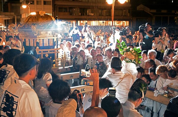 京都祗園祭“神轎洗滌”四年來首次回歸,灑上鴨川的水
