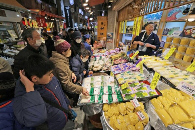 位於京都市中京區的「京都廚房」顧客熙熙攘攘。中國顧客的數量減少,有些人表示「現在比去年更容易逛了」。