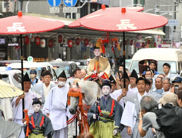 京都祗園祭薙刀童子前往八坂神社,在“煞三之道”儀式中莊嚴地跨上白馬