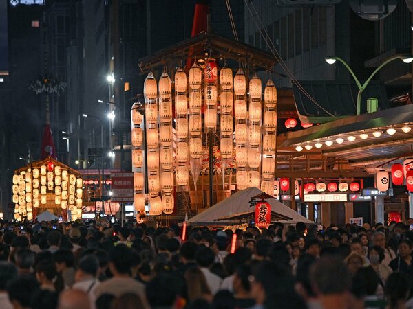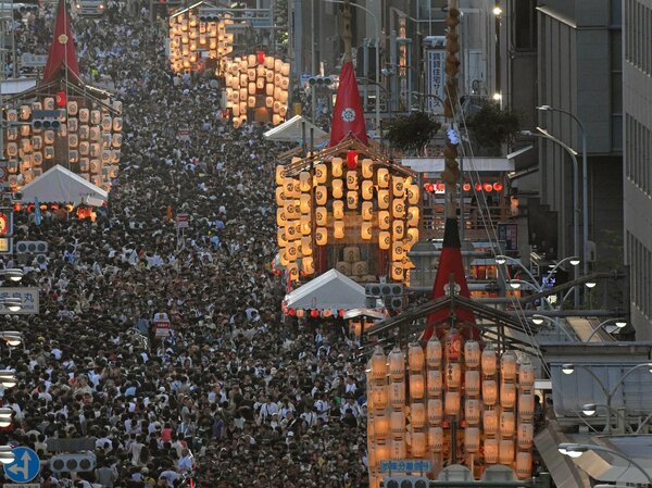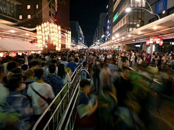 京都祇園祭的「宵宵山」預演活動吸引了19萬人參加。祇園音樂響起,微風偶爾吹拂。
