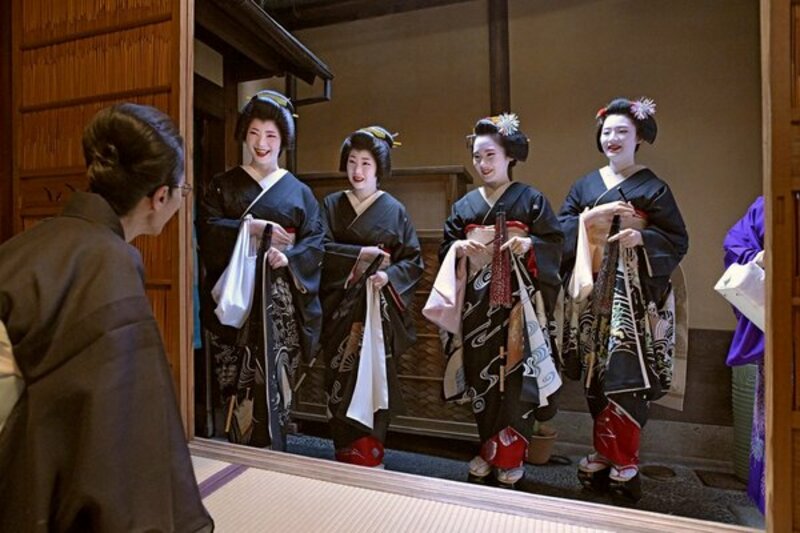 京都娛樂區的“八朔”。 藝妓和舞妓感謝他們的主人和茶館