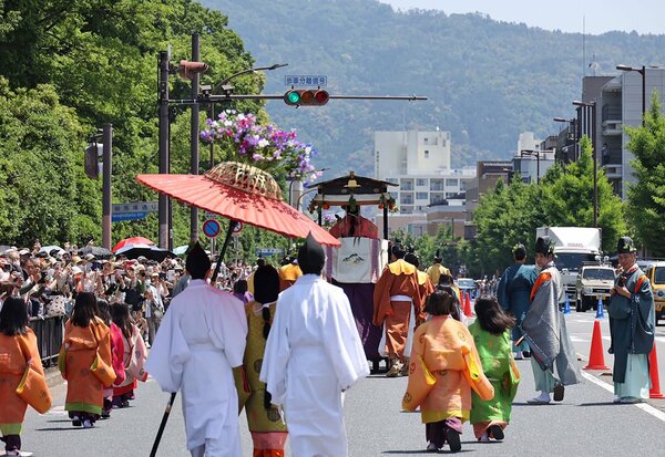 京都葵祭遊行開始,四年來第一幅華麗的王朝畫卷。