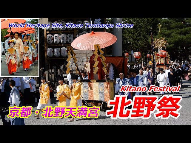 【4K動画】京都市上京区の世界遺産・北野天満宮で2025年10月1日、北野祭の神幸祭が行なわれた。村上天皇が御寄進したとされる第一鳳輦(ほうれん)、一條天皇が御寄進したとされる葱華輦(そうかれん)を含む三基の御鳳輦が、氏子区域を華やかに巡行した。