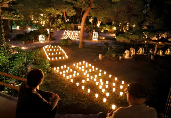 Chief priest Genbo Nishikawa (86 years old) named the lighting of candles on roof tiles "bonto," and has been holding night-time viewing events every autumn since 1999.