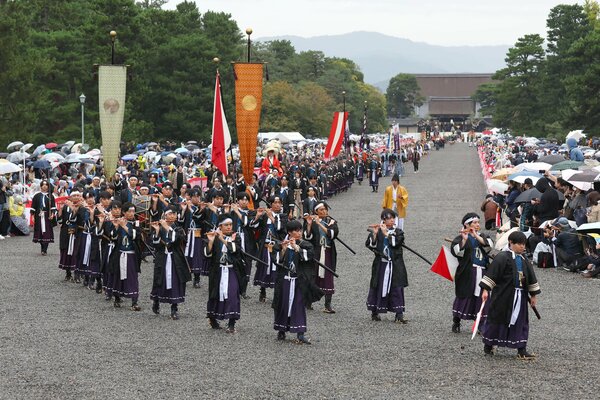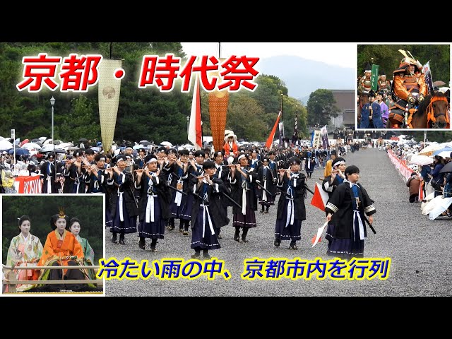 The Jidai Matsuri, one of Kyoto's three major festivals, was held in Kyoto City on October 22, 2025. A procession of approximately 2,000 people dressed in costumes from each era, from the Meiji Restoration to the relocation of the capital to Heian, paraded down the main street of the capital in the rain and with a cold autumn breeze blowing through.