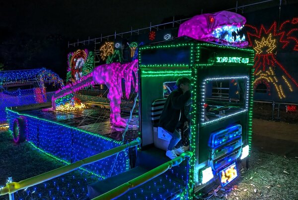 Yumi Tatsumi (83 years old), from Joyo City, who visits with her family every year, said, "It's interesting with lots of intricate artwork and big dinosaurs. My grandchildren seem to enjoy it, too."