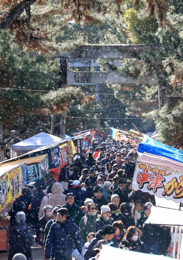 On January 25, 2026, Kitano Tenmangu Shrine (Kamigyo Ward, Kyoto City), known as the shrine to the god of learning, held its first festival of the year, "Hatsutenjin," a traditional Japanese festival. Despite the bitter cold and light snow, the shrine bustled with students praying for success and worshippers enjoying the street stalls.