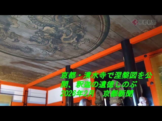 On February 15th, the anniversary of the death of Buddha, the founder of Buddhism, a Nirvana painting depicting the Buddha's passing was unveiled at the Kyodo Hall of Kiyomizu-dera Temple in Higashiyama Ward, Kyoto. Worshippers clasped their hands and offered candles to commemorate the virtues of the Buddha, also known as the Buddha's founder.