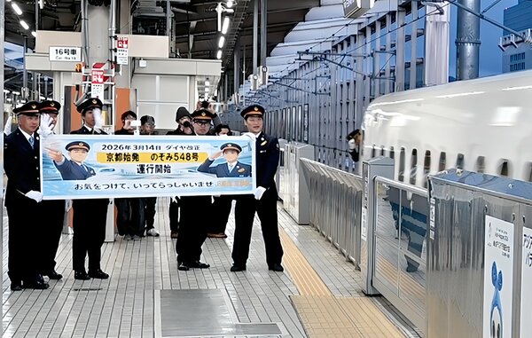 On the morning of March 14, 2026, the first-ever "Nozomi" Shinkansen train originating in Kyoto and bound for Tokyo departed from the northbound platform of JR Kyoto Station in Shimogyo Ward, Kyoto City.