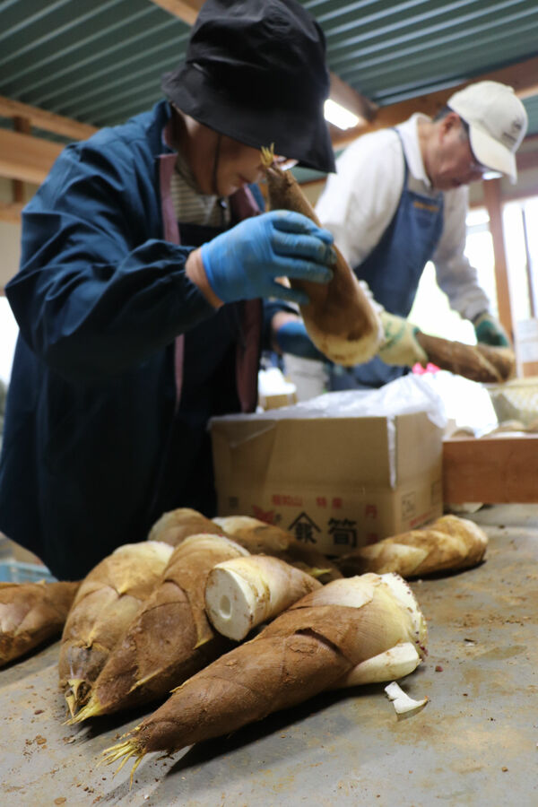 Shipments of "Hoonji bamboo shoots," a specialty of Fukuchiyama City, Kyoto Prefecture, have reached their peak. This year, high temperatures in early spring led to rapid growth, and farmers are busy with morning harvesting and shipping.