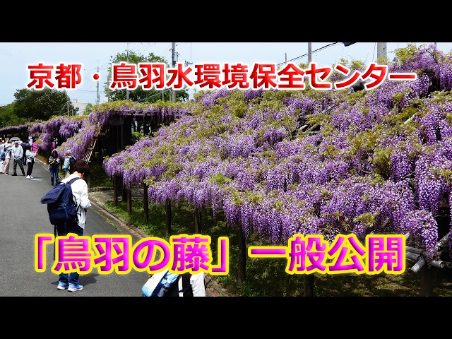 The annual "Toba Wisteria" public viewing event began on April 17, 2026, at the Kyoto City Waterworks Bureau's Toba Water Environment Conservation Center (Minami Ward, Kyoto City), known for its approximately 120-meter-long wisteria trellis. Visitors enjoyed the magnificent sight of the purple curtains of wisteria.