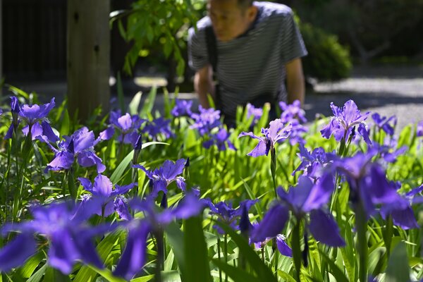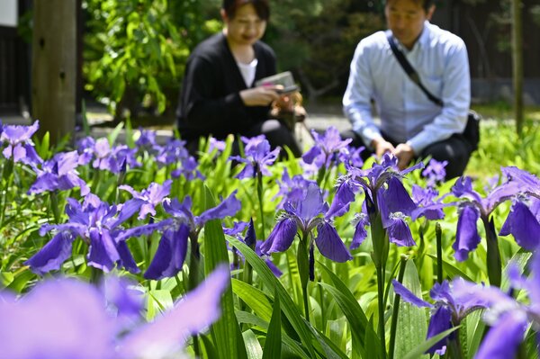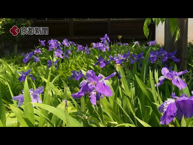 A special public viewing of the iris-like perennial plant, the Japanese iris (Ichihachi), is being held at Tokujomyoin Temple in Higashiyama Ward, Kyoto City, to coincide with its blooming season. The purple and white flowers are softly coloring the grounds of the nunnery.