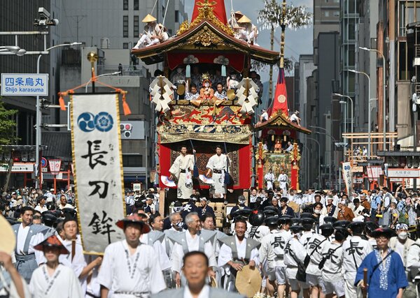 The "Saki Matsuri," or first float procession, of the Gion Festival, one of Japan's three major festivals, began in the center of Kyoto City on July 17 after a two-year hiatus. The procession was canceled in 2020 and 2021 due to the COVID-19 pandemic.