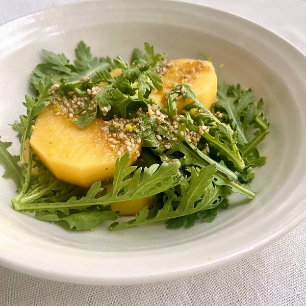 This dressing has the aroma of crown daisy, the sweetness of persimmon, and a slight sourness, allowing you to enjoy a complex marriage of flavors unique to this season.